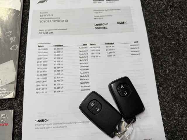 Deze Toyota IQ komt van de 1e eigenaar en is uitstekend bij de Toyota dealer onderhouden met alle boekjes, NAP en 2 sleutels. Hij heeft o.a. een Automatische Airco, Keyless entry & start, 15" sportvelgen met Michelin banden, etc. De APK is geldig tot 18-02-2026. De lak op de voorbumper laat los en zou gespoten moeten worden (meerprijs €500 en 3-4 weken wachttijd). Daar rijdt de auto echter niet minder om. Levering met een nieuwe APK ie tegen meerprijs uiteraard bespreekbaar.